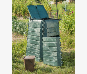 Ce composteur, conçu à partir de plastique recyclé, est fabriqué en France.