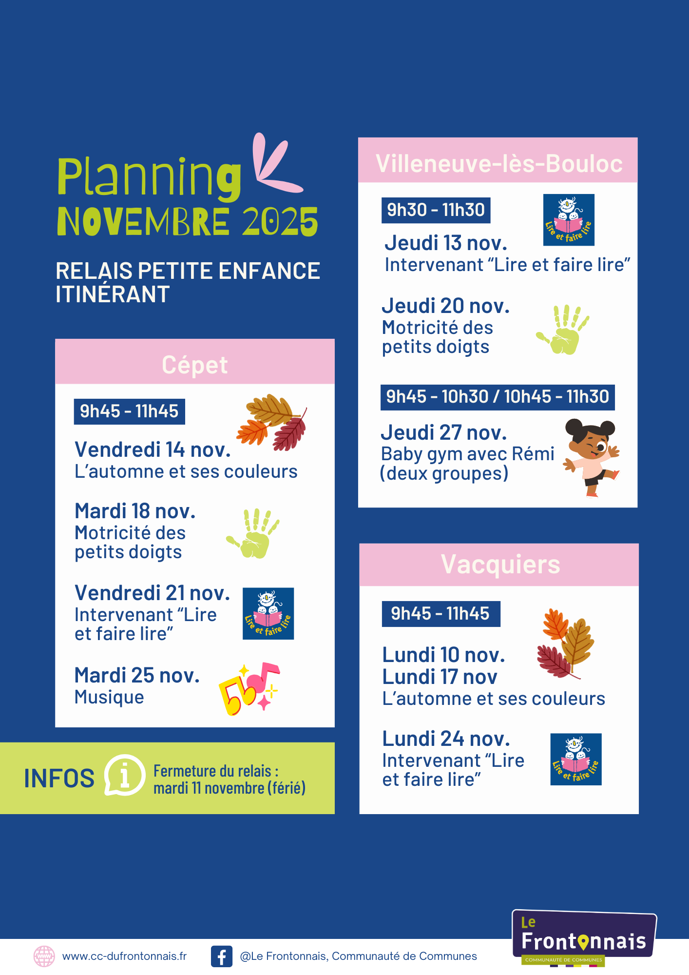 Contact : Amélie HEIRMAN – 06 83 60 48 03 / relaispetiteenfance.itinerant@cc-dufrontonnais.fr